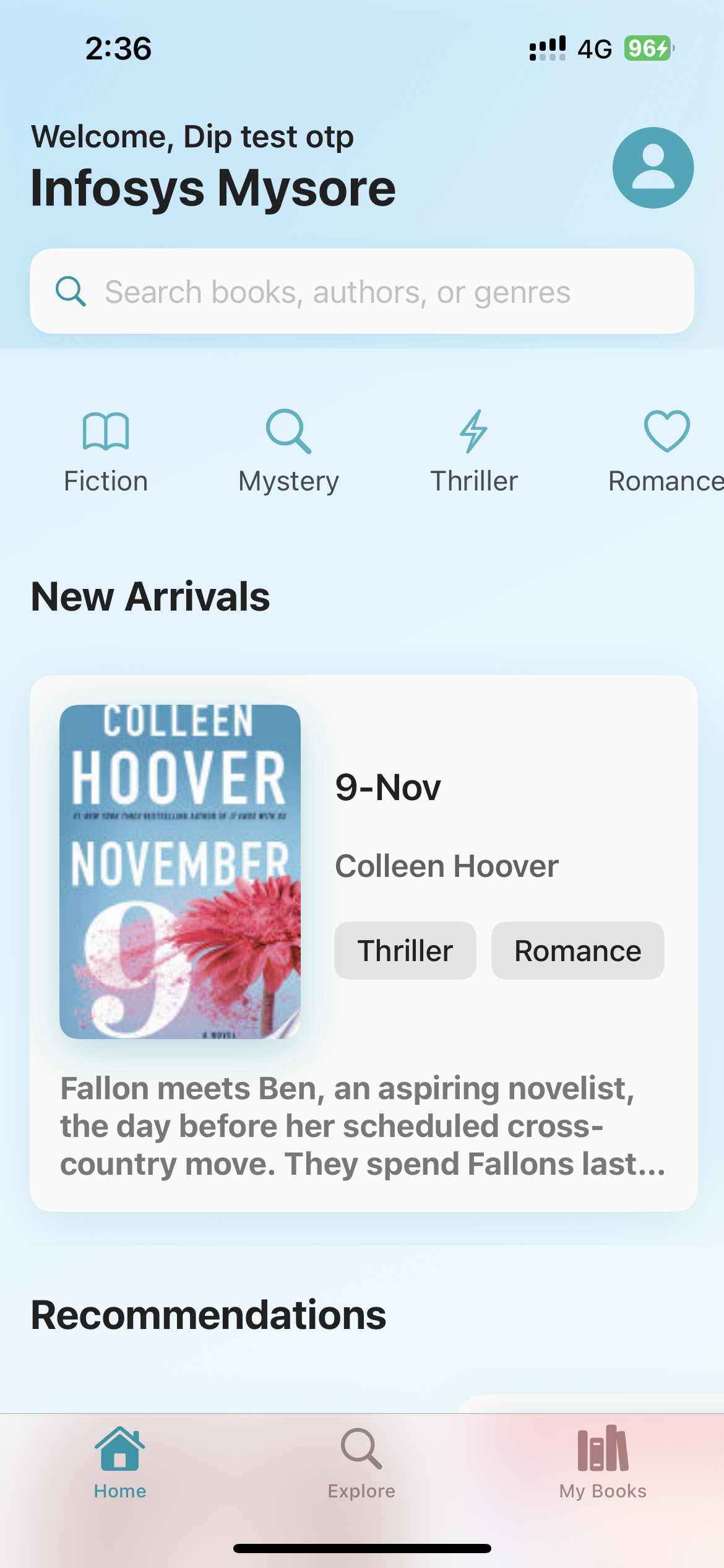 A comprehensive library management system with role-based access across multiple libraries. Built using SwiftUI and Express.js with Supabase for backend and deployed using Docker and Azure. It supports iOS 16.6+ with iCloud SMTP integration for secure 2FA. The application achieved a 90% improvement in load time, optimizing from 6.71s to 147ms using caching, lazy loading, and architectural enhancements.